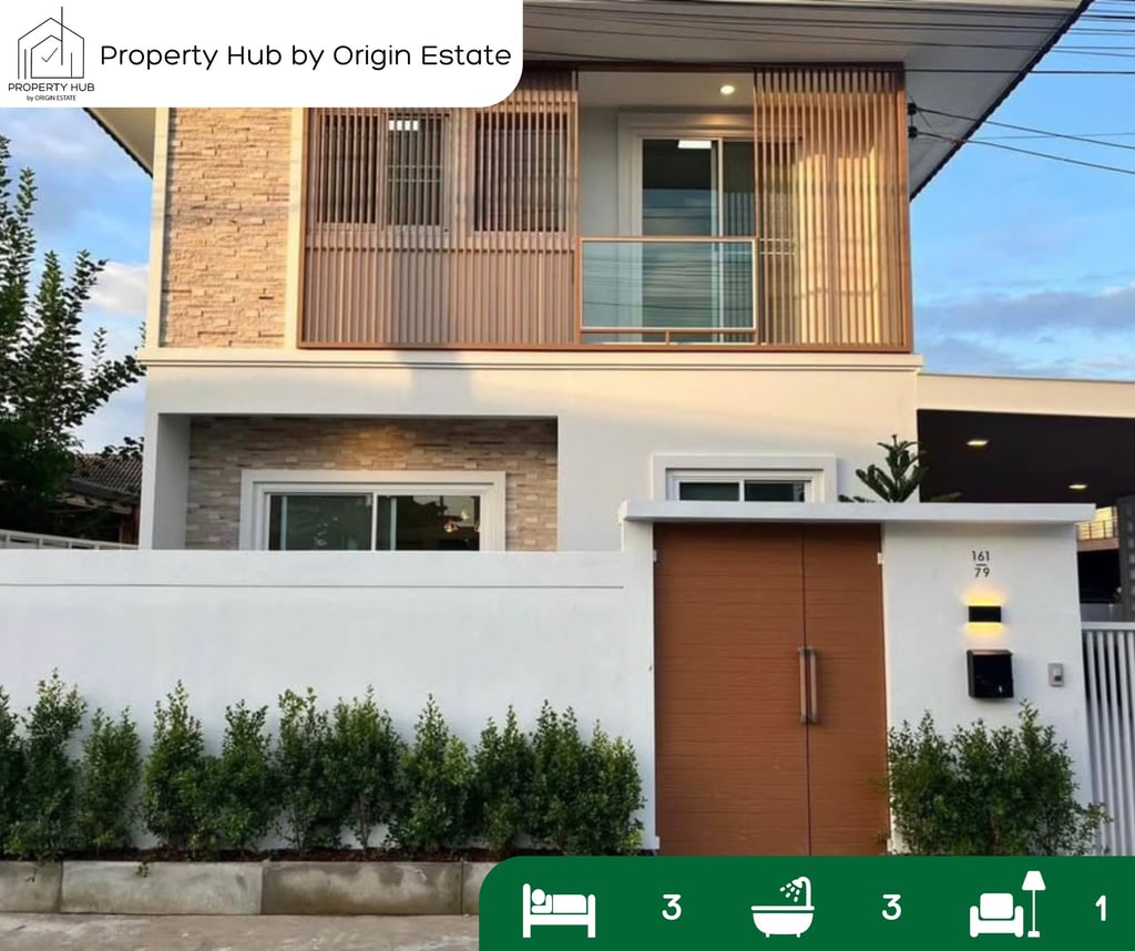 This Muji-style house in Doi Saket offers a calm atmosphere in a private, quiet neighborhood – just a short drive to the city. With outdoor space all around, it's the perfect blend of comfort and nature.
